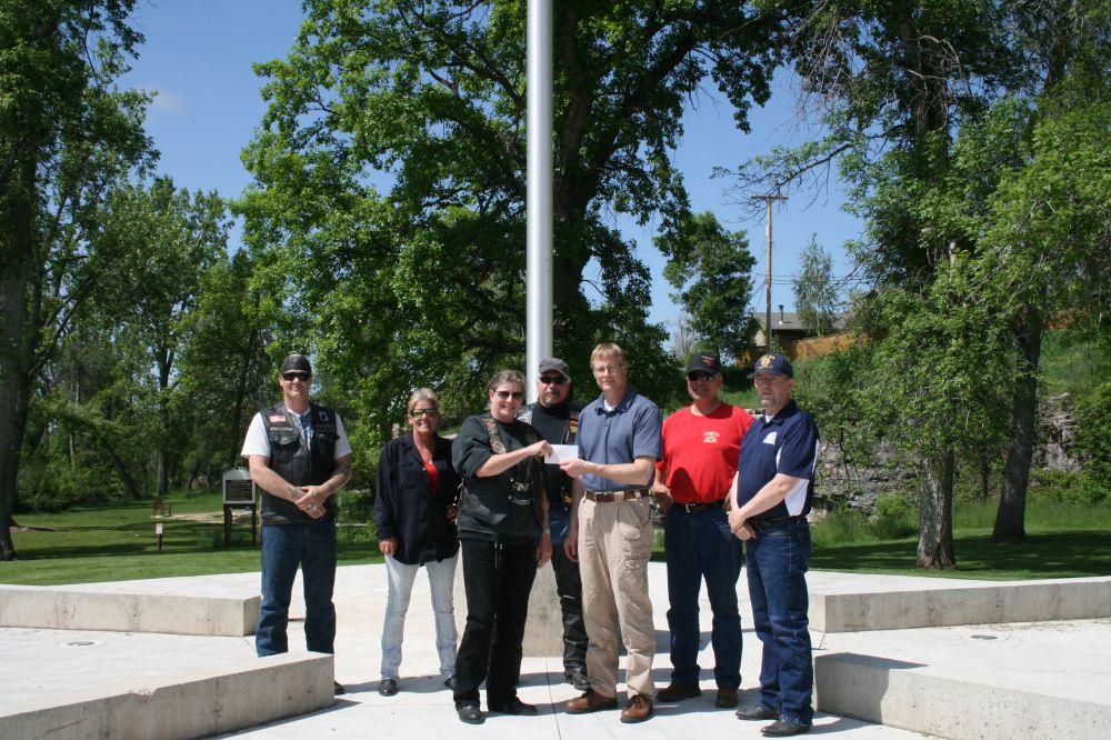 The 3rd Annual Fallen Warriors Memorial Poker Run donates $550 to the Spearfish Veterans Monument.