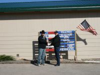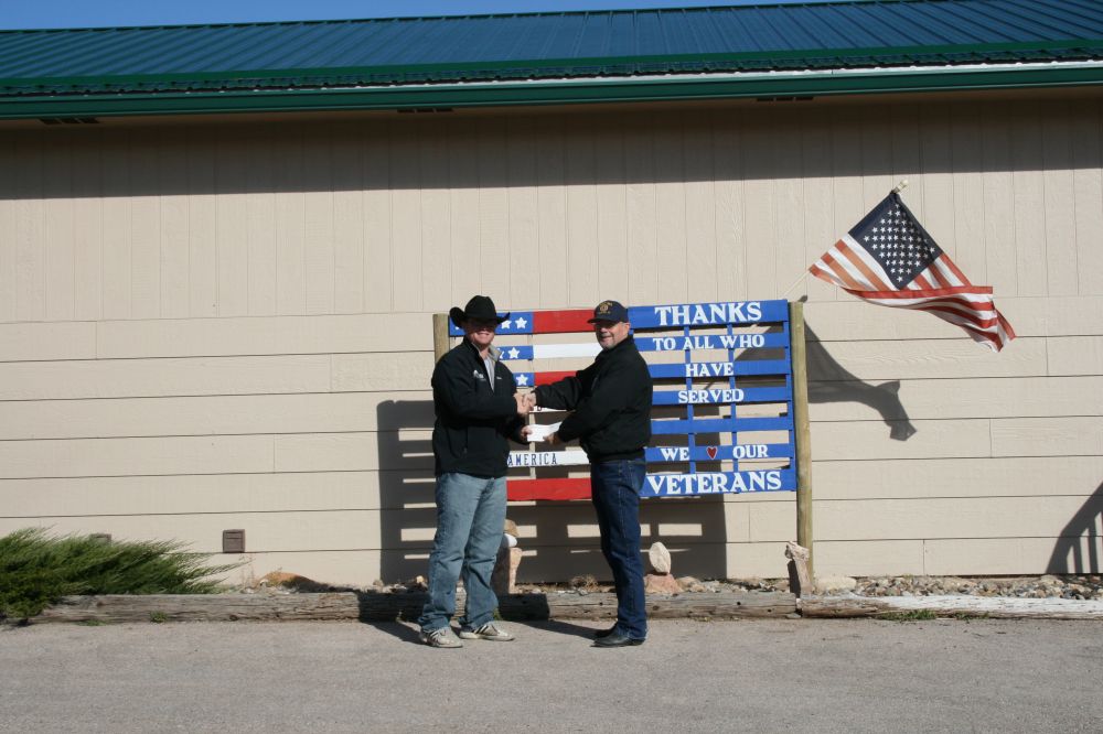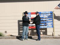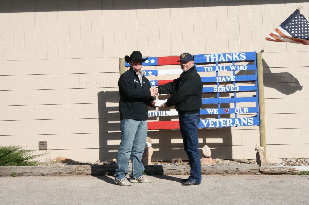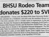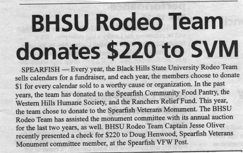 The BHSU Rodeo Team donates $220 to the Spearfish Veterans Monument.