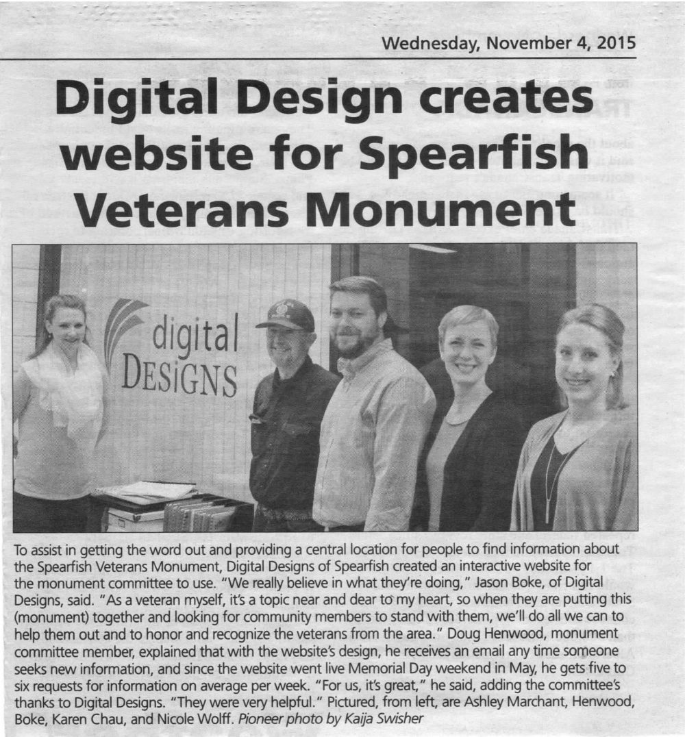 Digital Designs donates a new custom-designed and built Spearfish Veterans Monument Website.