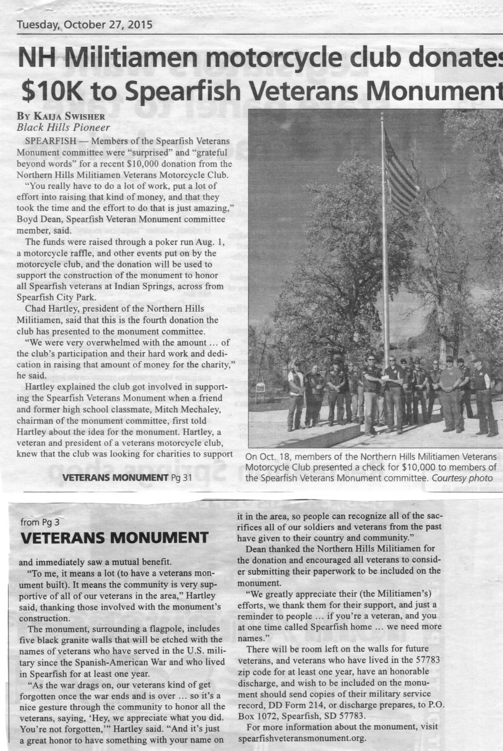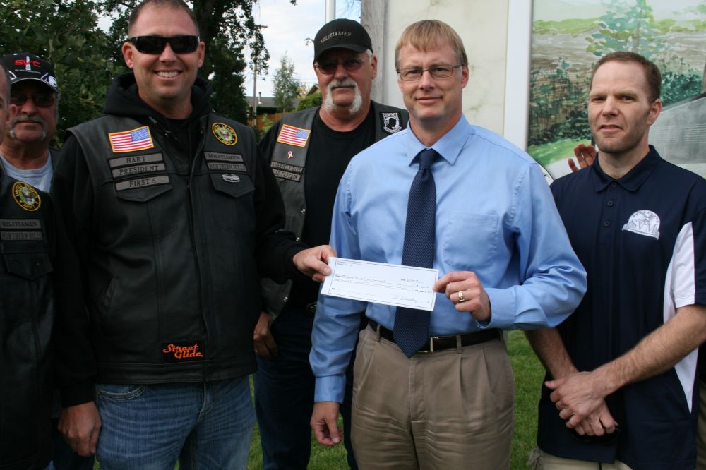 Northern Hills Militiamen Veterans Motorcycle Club donates $10K to the Spearfish Veterans Monument.