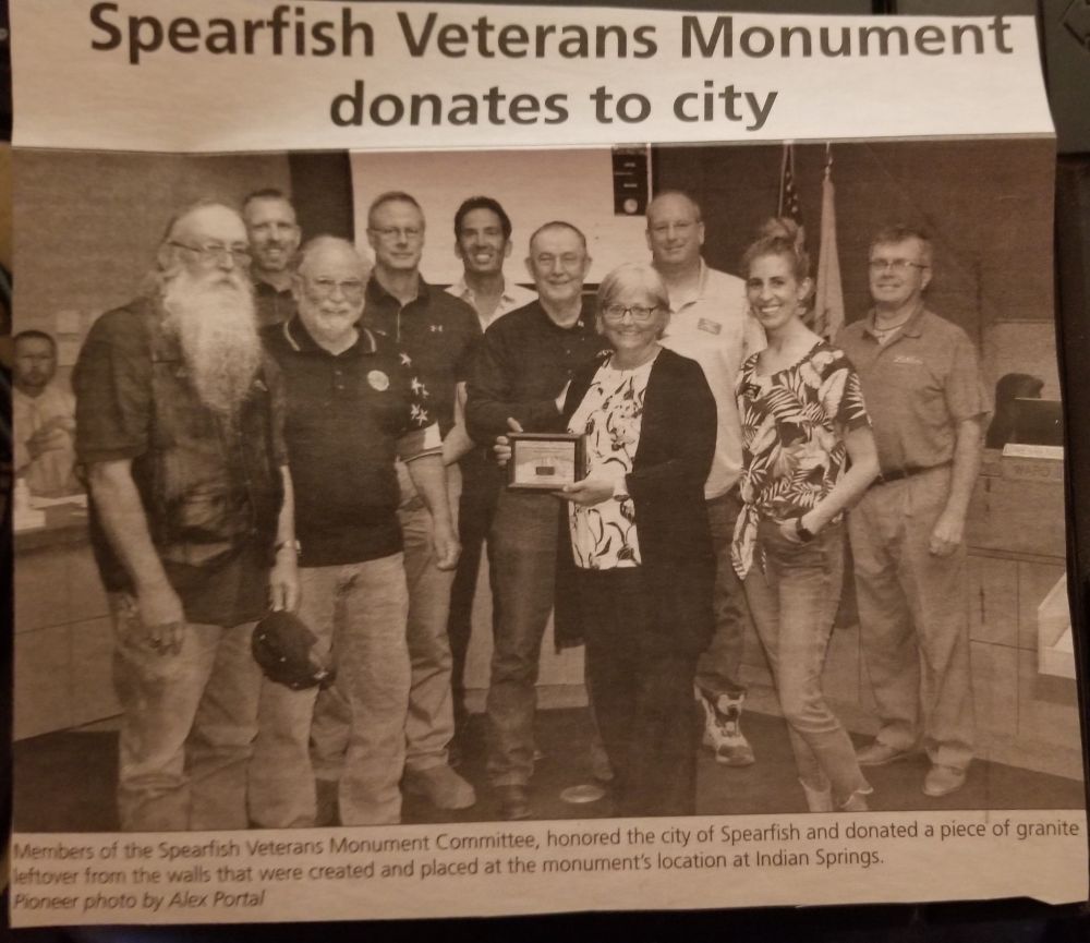 Mayor Boke, on behalf of the city, accepted a piece of granite that was left over from the wall.