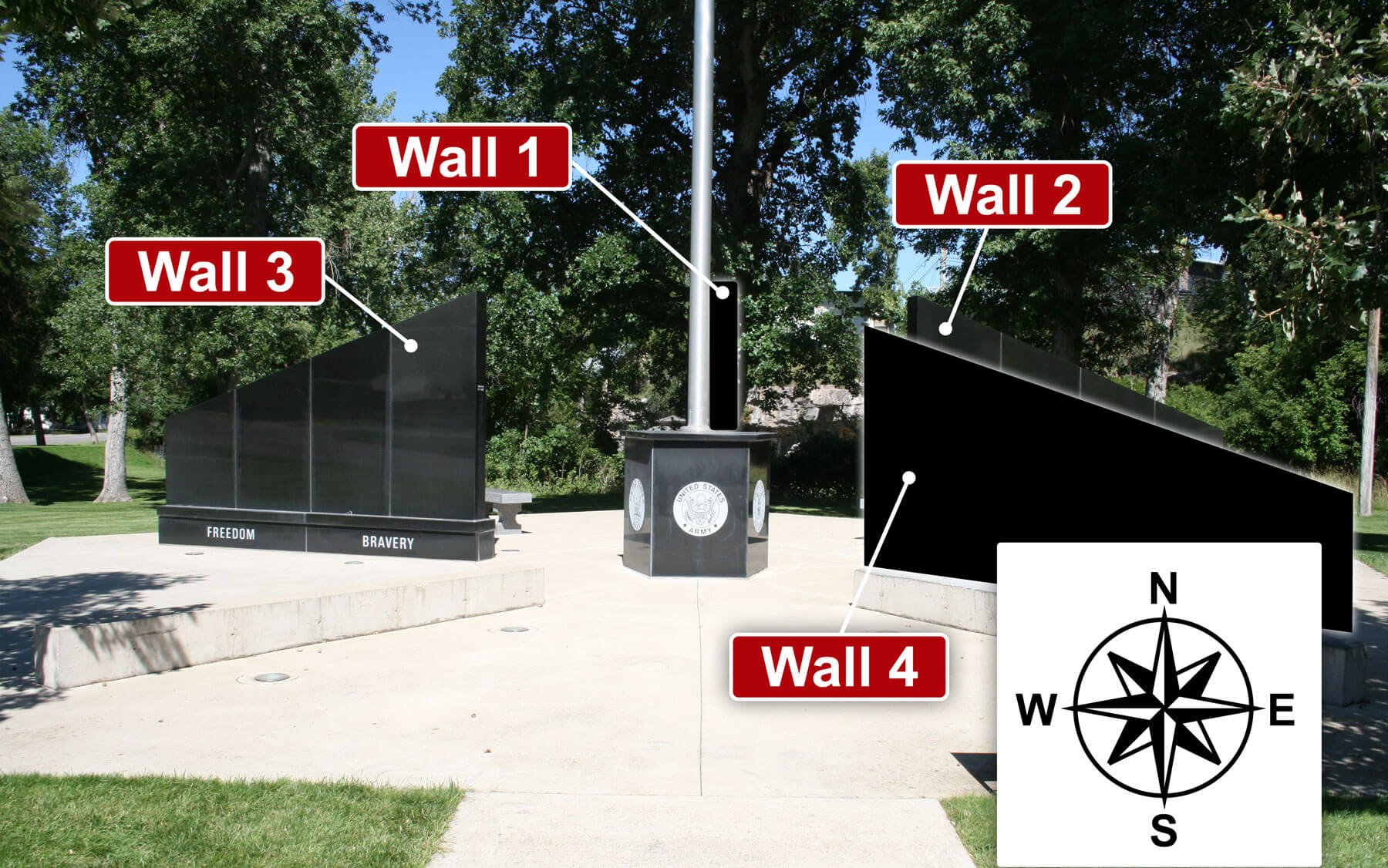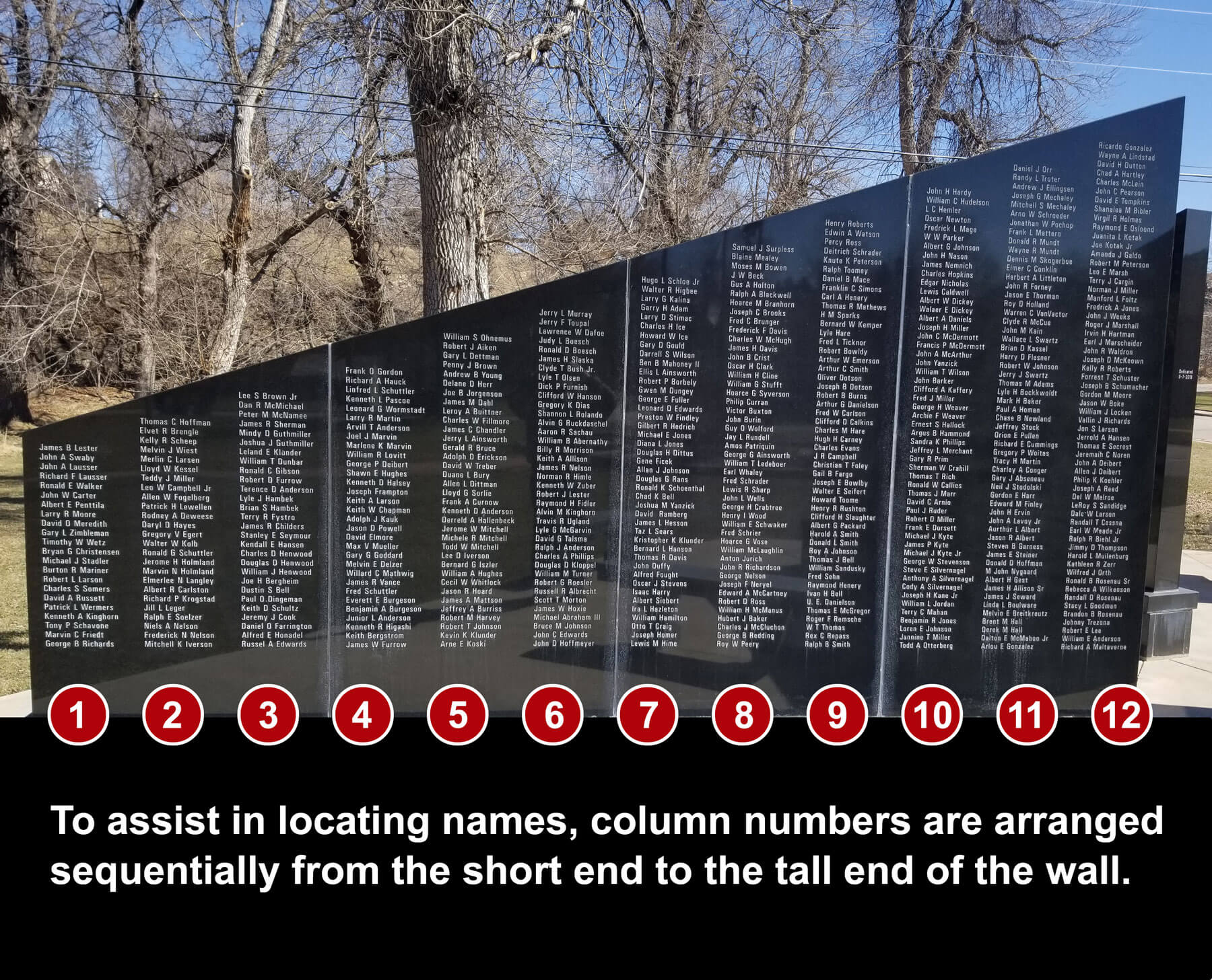The images below are provided to illustrate the numbering and orientation of the walls. Columns are numbered sequentially from the short end to the tall end of the wall.